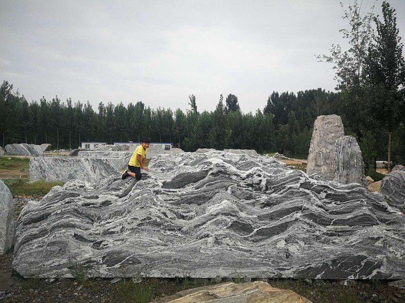 雪浪石質地堅潤,黑地白脈,紋理清晰。底色為黑、灰黑色,原石裸露的部分常呈黃褐色,白色的紋絡如雪花勻撒于石上,清晰而不張揚,有些石上則有著明快的白色花紋,形似溪水瀑泉、浪涌雪沫,亦如幅若隱若現的山水畫卷。雪浪石儲量較豐富,體量大者幾噸、幾十噸,可作園林景觀石,小者幾公斤,可供賞玩。"雪浪"之名源于宋代大文豪蘇東坡。